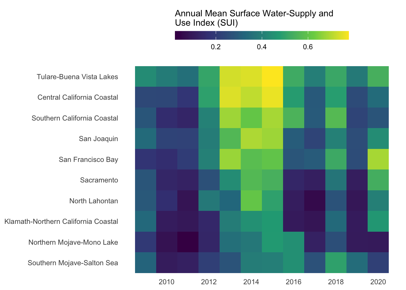 labs(fill = "Annual Mean Surface Water-Supply and\nUse Index (SUI)") +