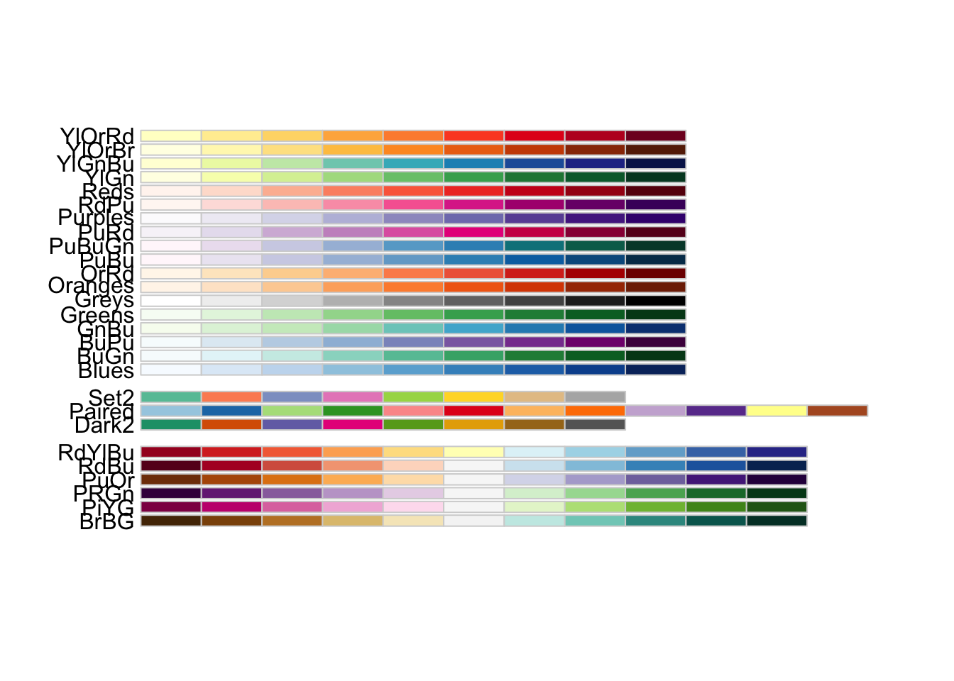RColorBrewer:: display.brewer.all (colorblindFriendly = TRUE )