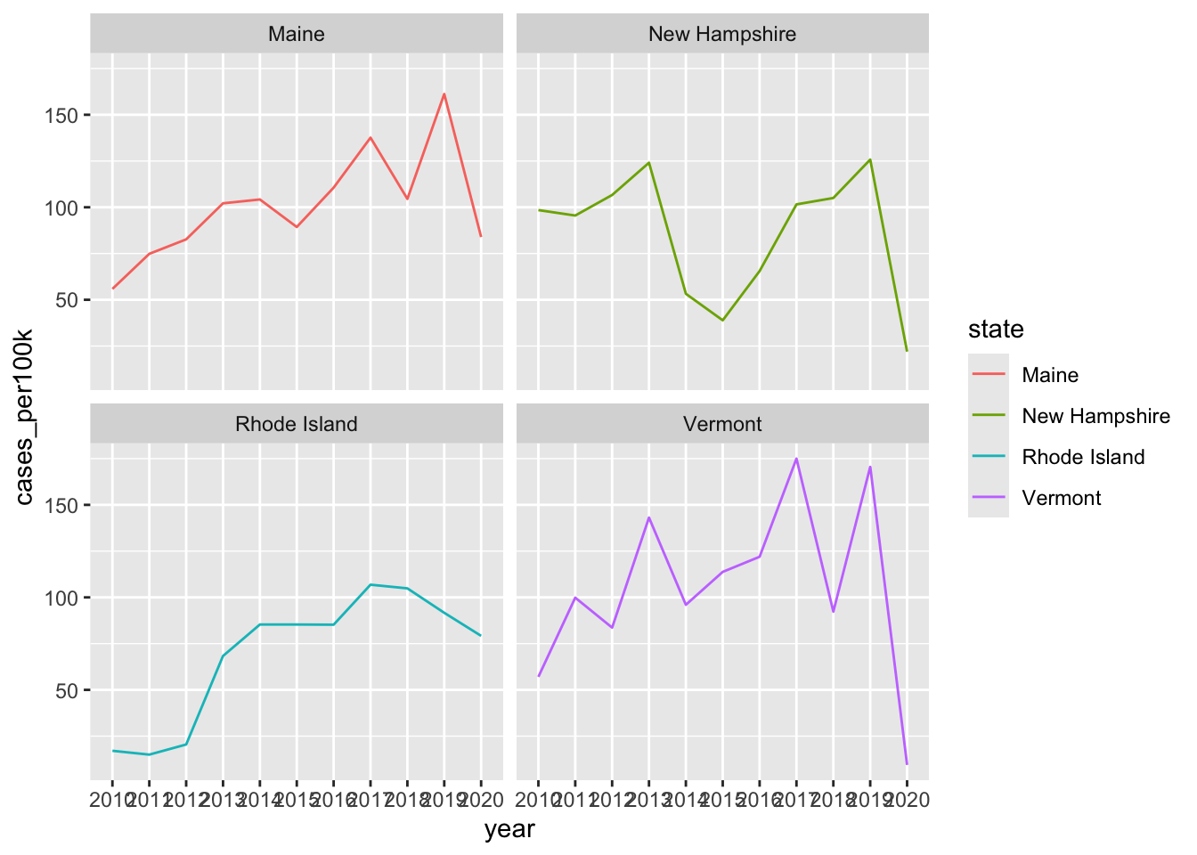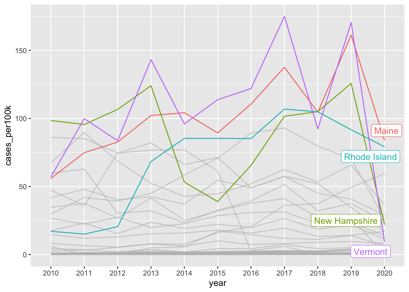 ggplot(aes(x = year, y = cases_per100k, group = state, color = state)) +