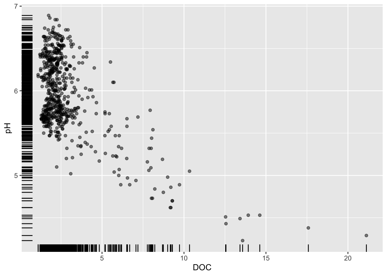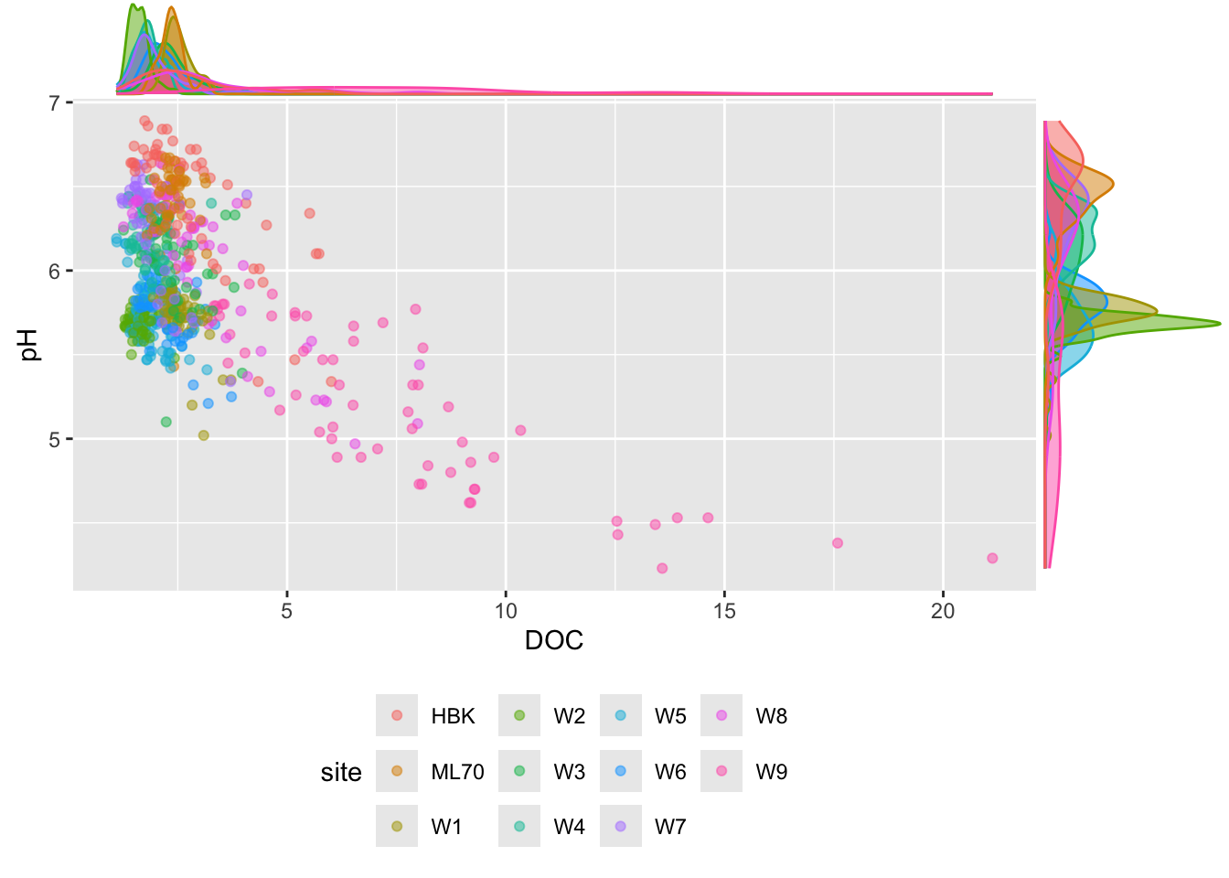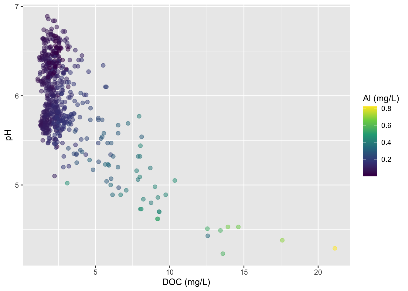 labs(x = "DOC (mg/L)", size = "Al (mg/L)", color = "Site")