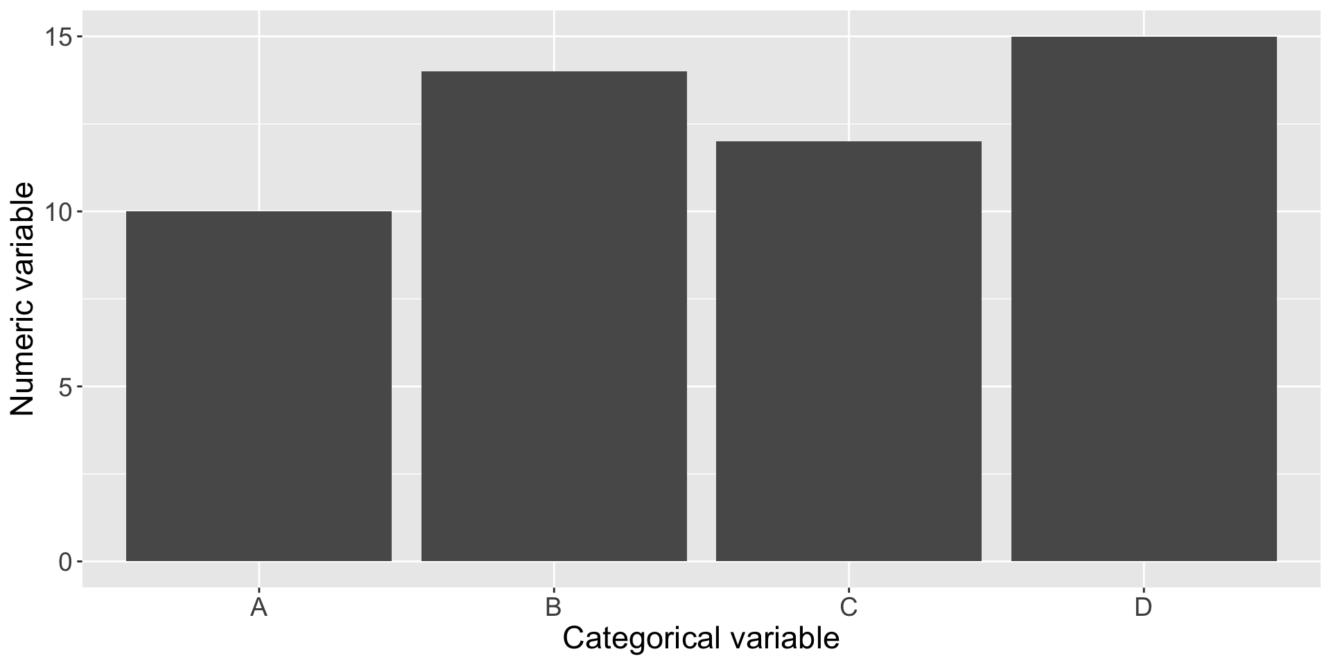 Bar plots shine when you need to compare counts (e.g. populations size of different countries). However, you should proceed with caution when using bar plots to visualize the distribution of / summarize your data. Doing so can be misleading, particularly when you have small sample sizes. Why?