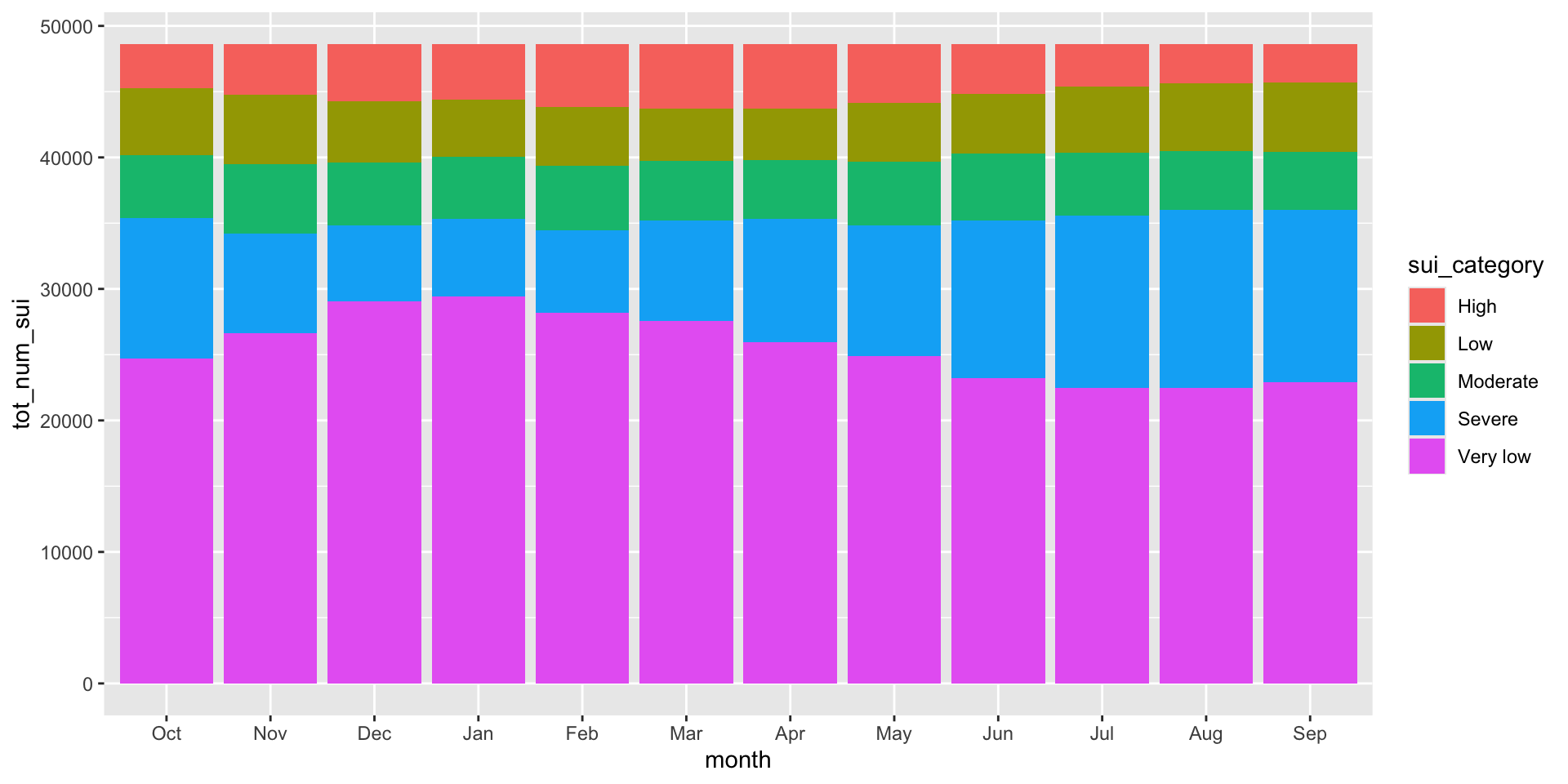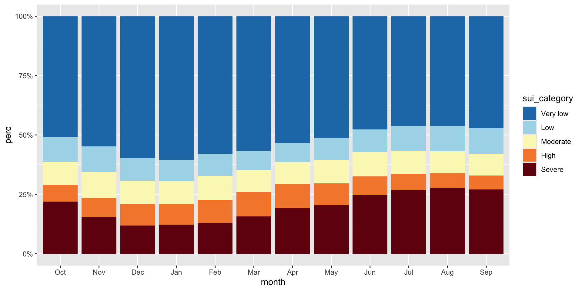 ggplot(sui_severity, aes(x = month, y = perc, fill = sui_category)) +
