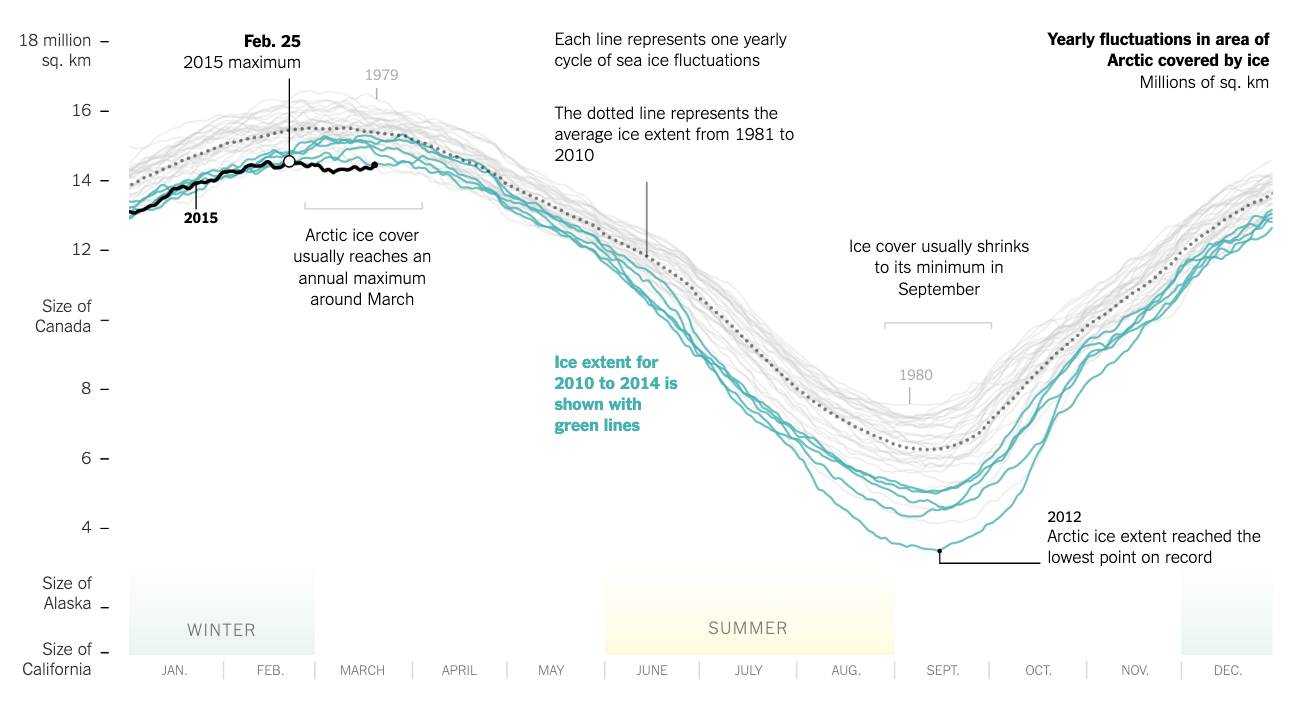 Source: Arctic Ice Reaches a Low Winter Maximum (New York Times).