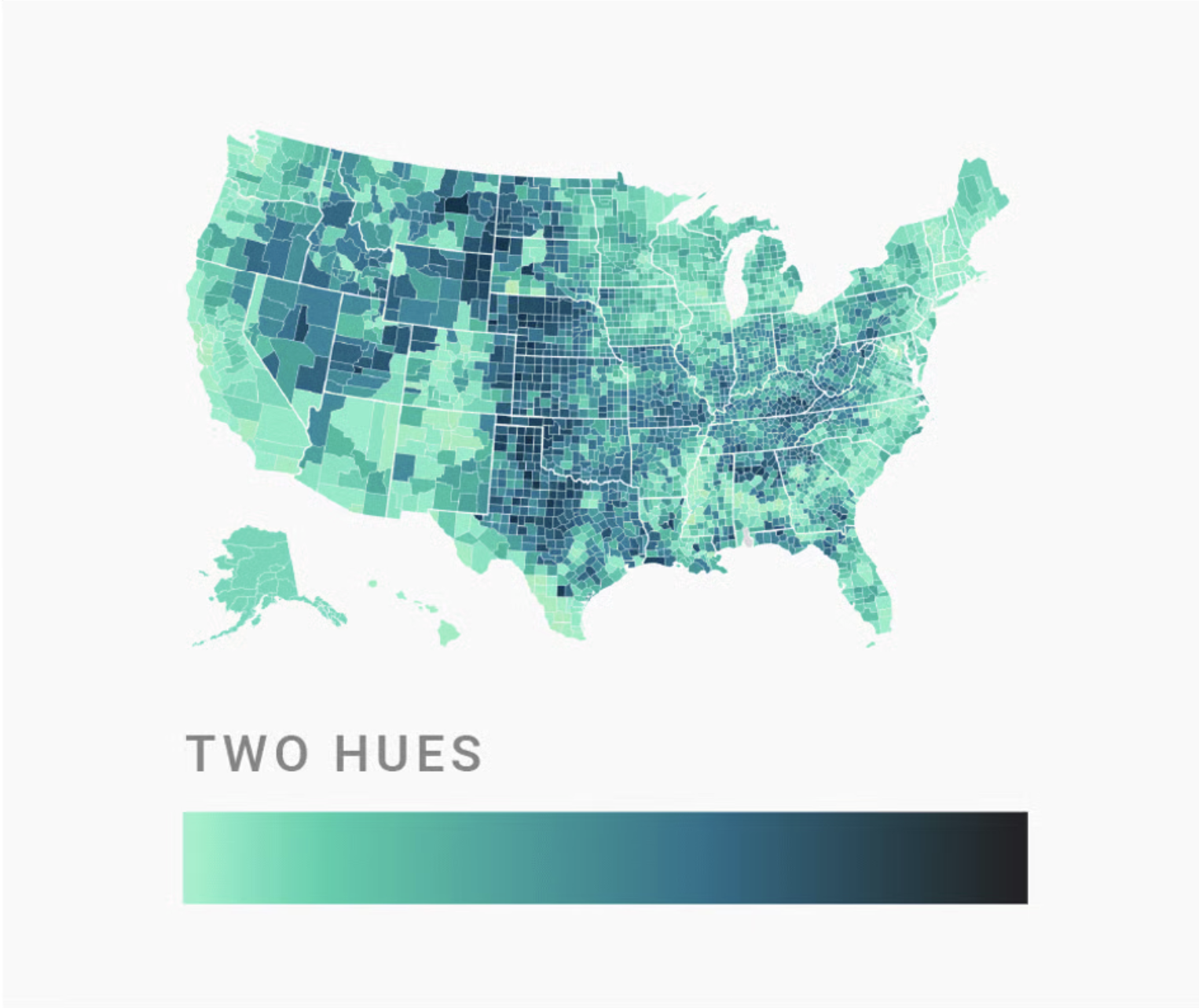 Use lightness (and ~2 hues) to build gradients