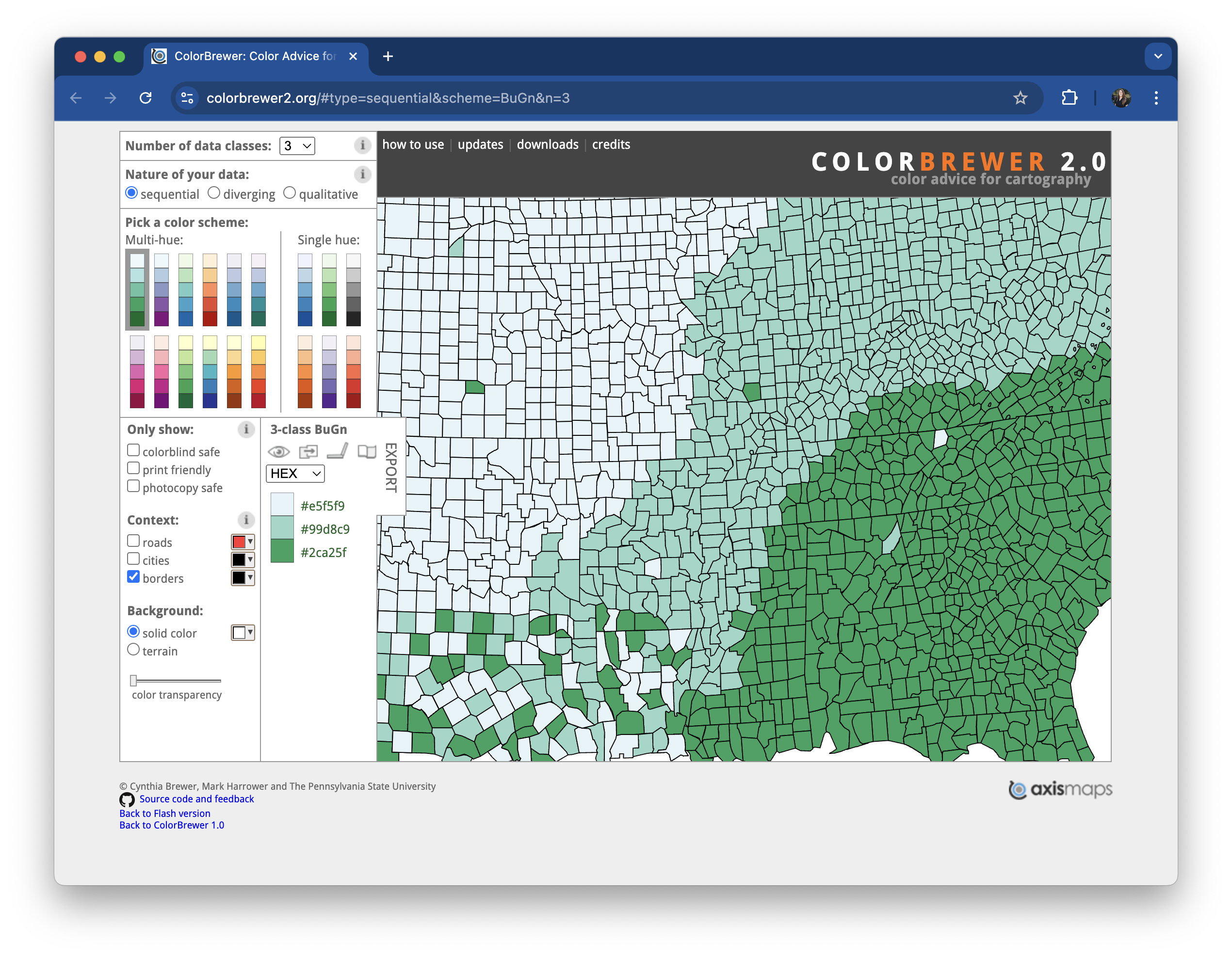 ColorBrewer’s web-based interface for exploring palettes