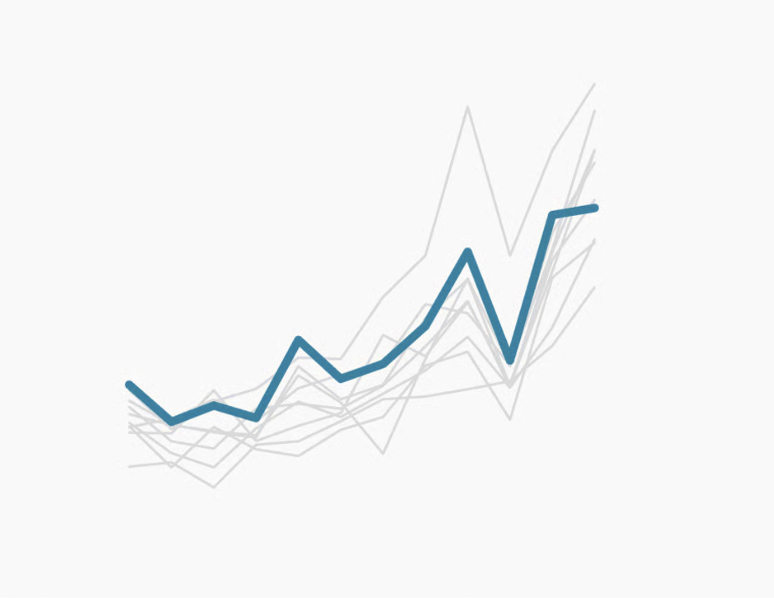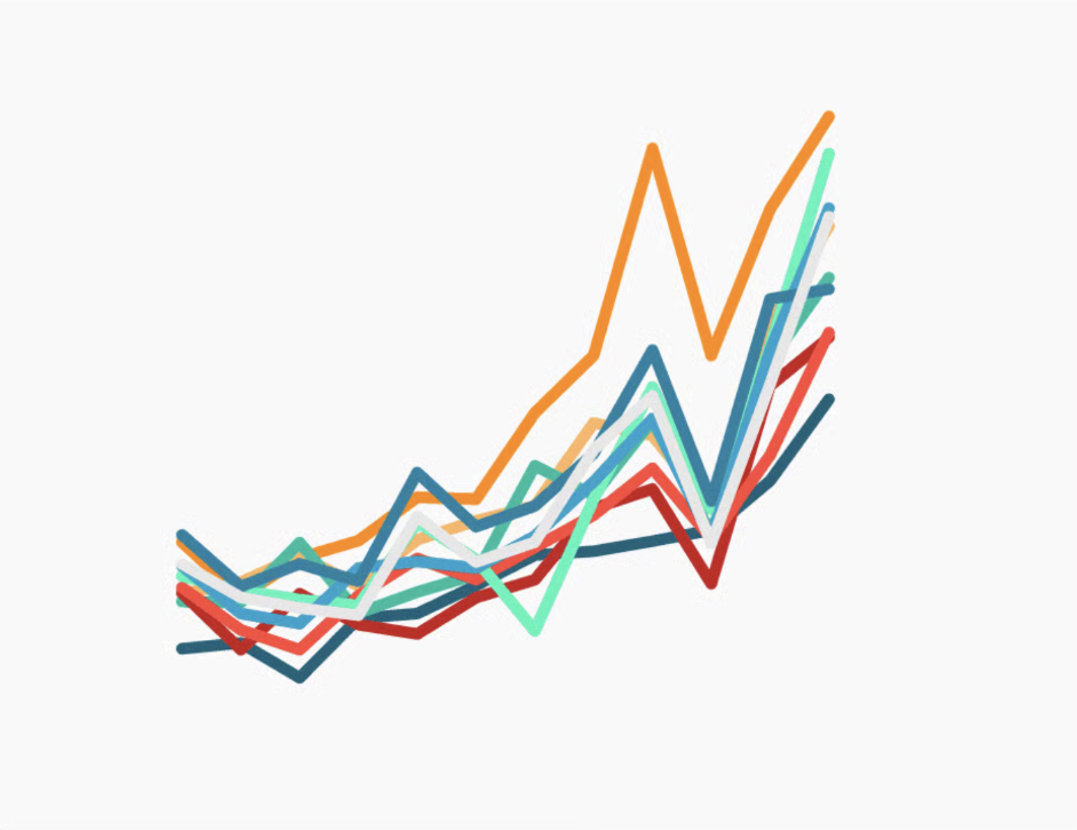 The more colors you use, the more difficult to becomes to distinguish between groups. Consider an entirely different chart type, or use color to highlight the only the group(s) of interest. | “Consider the color grey as the most important color in Data Vis.” -Lisa Charlotte Muth