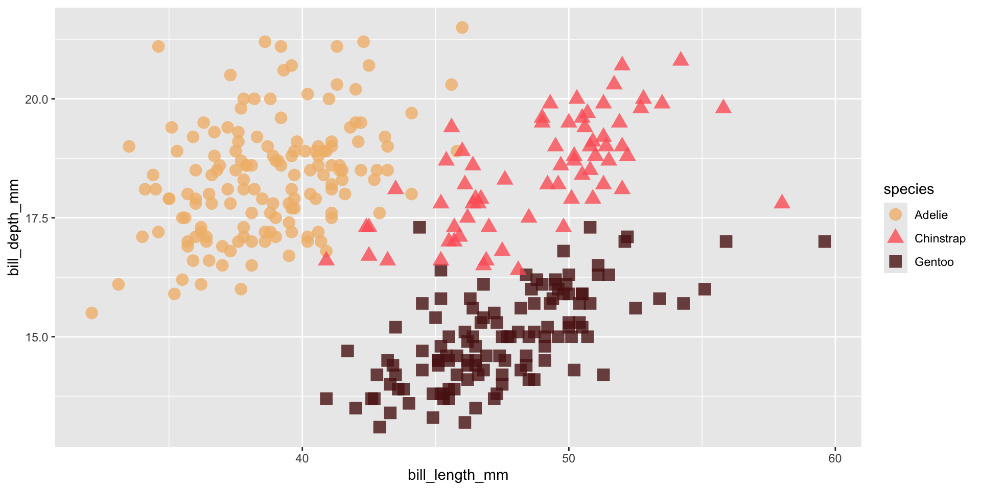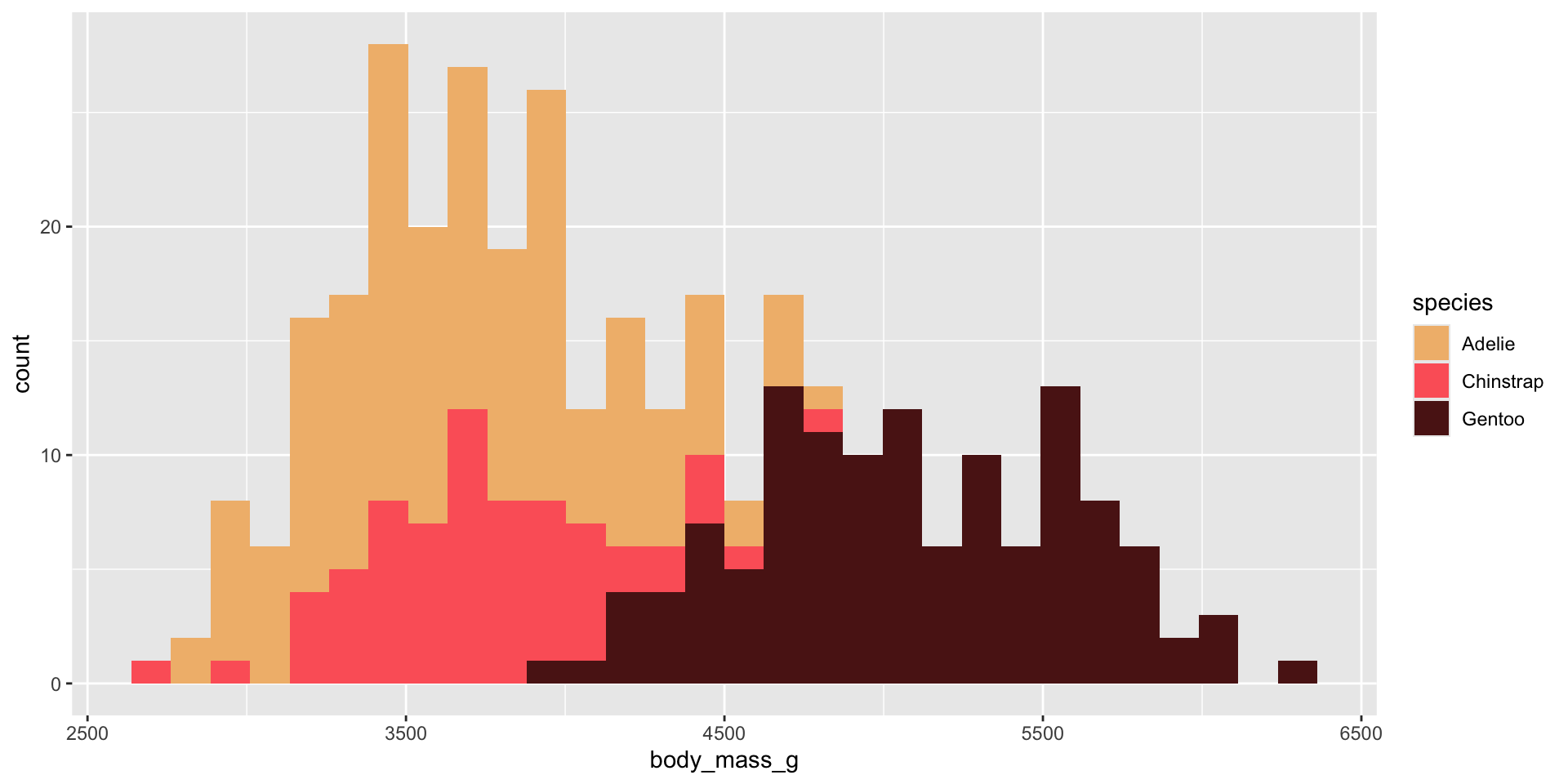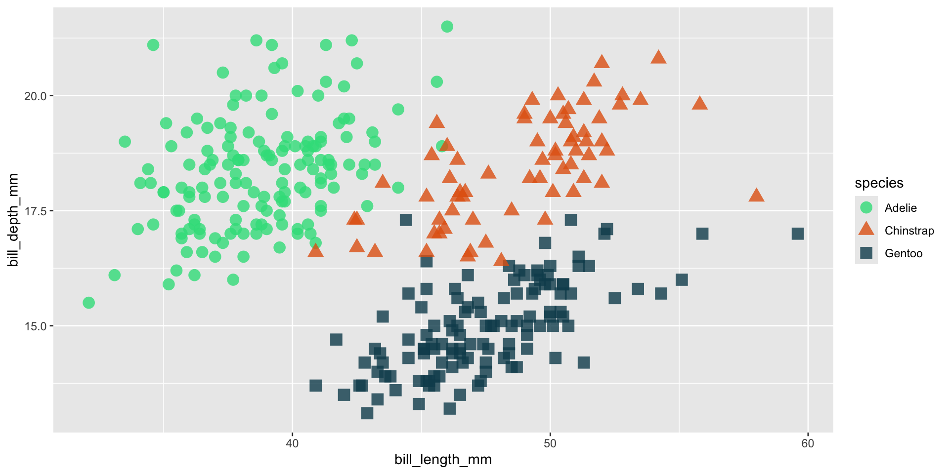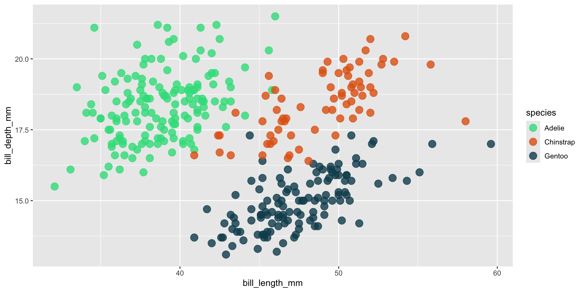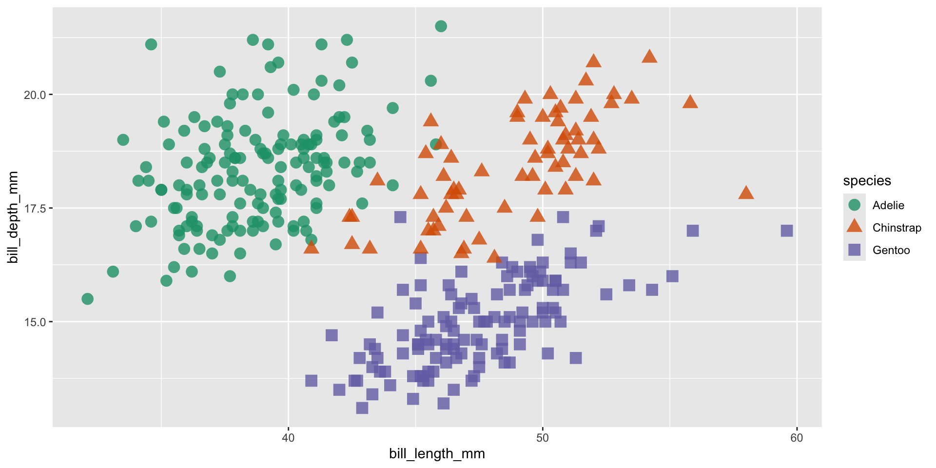 We should always be consistent with our colors. E.g. if Gentoo penguins are blue in one plot, they should be blue in all plots. Notice that our colors don’t “stick” with the species they represent, but rather they’re applied in the order that they appear in our palette: