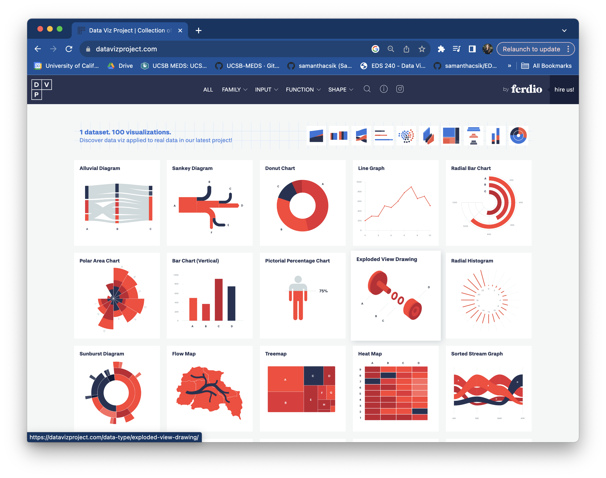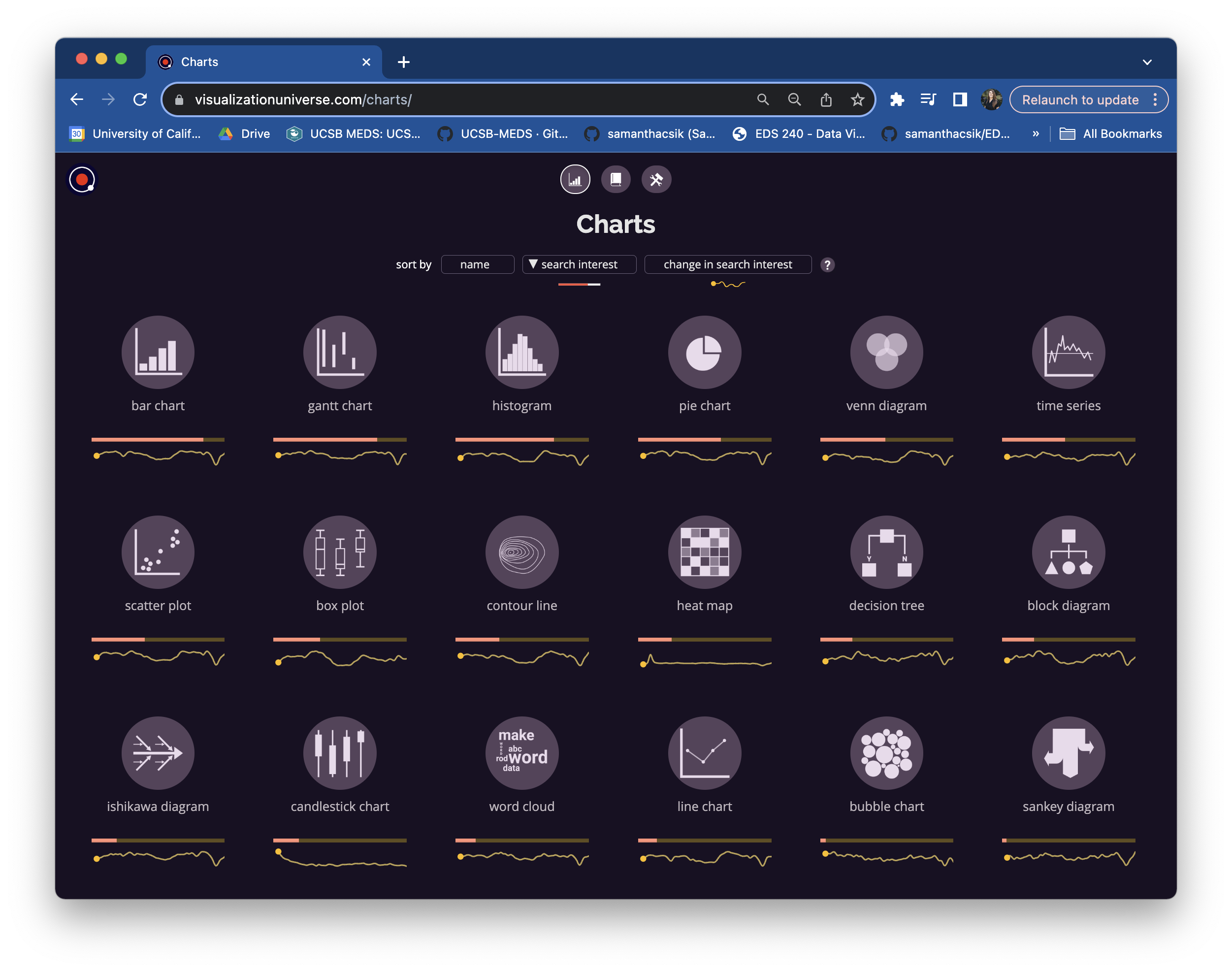 From Data to Viz search graphic types by data type or by function (+ R & Python Graph Gallery)