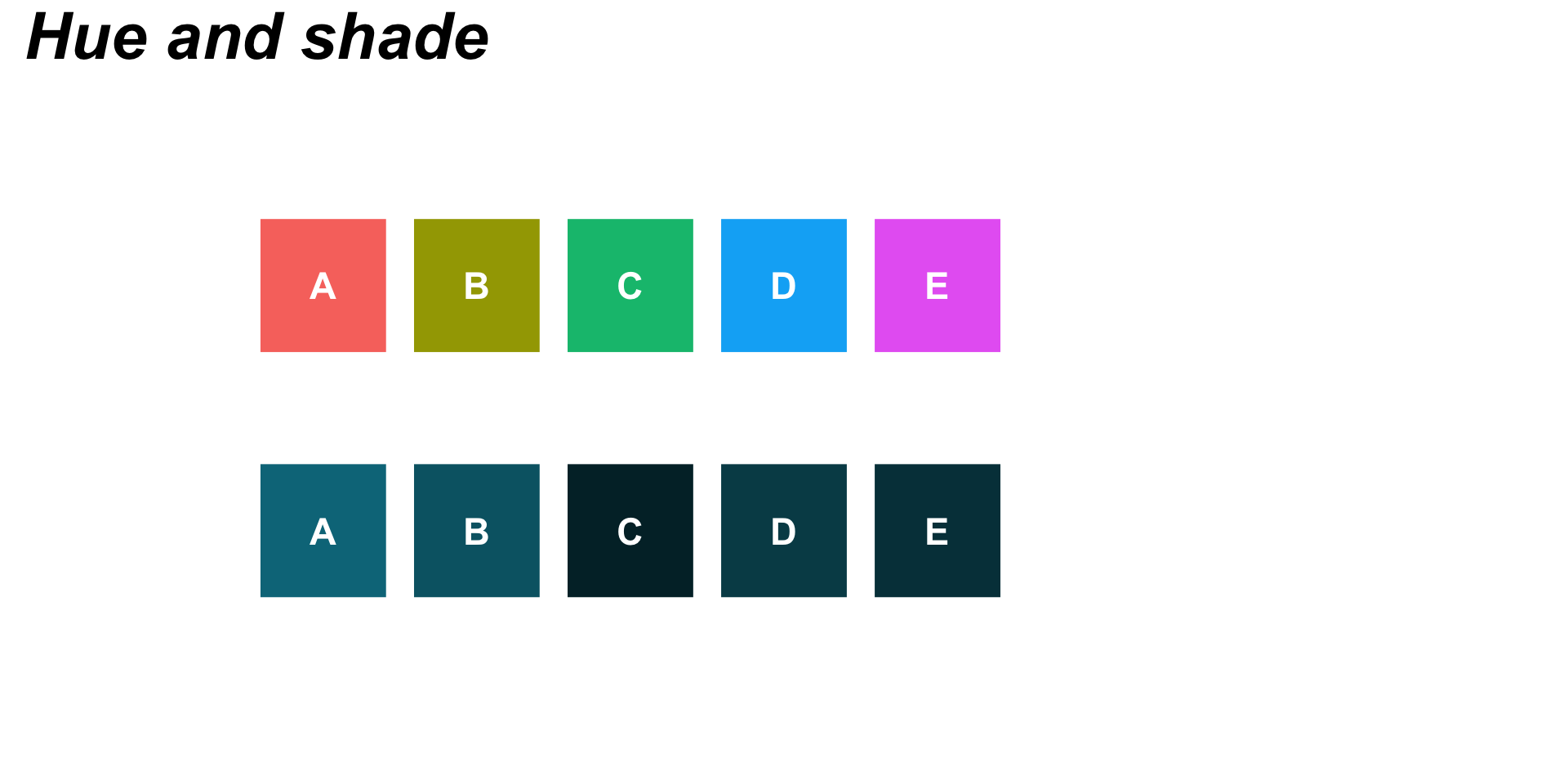 How values of a variable(s) of interest are represented by visuals (e.g height of bar, shaded region of area plot, color of data points)