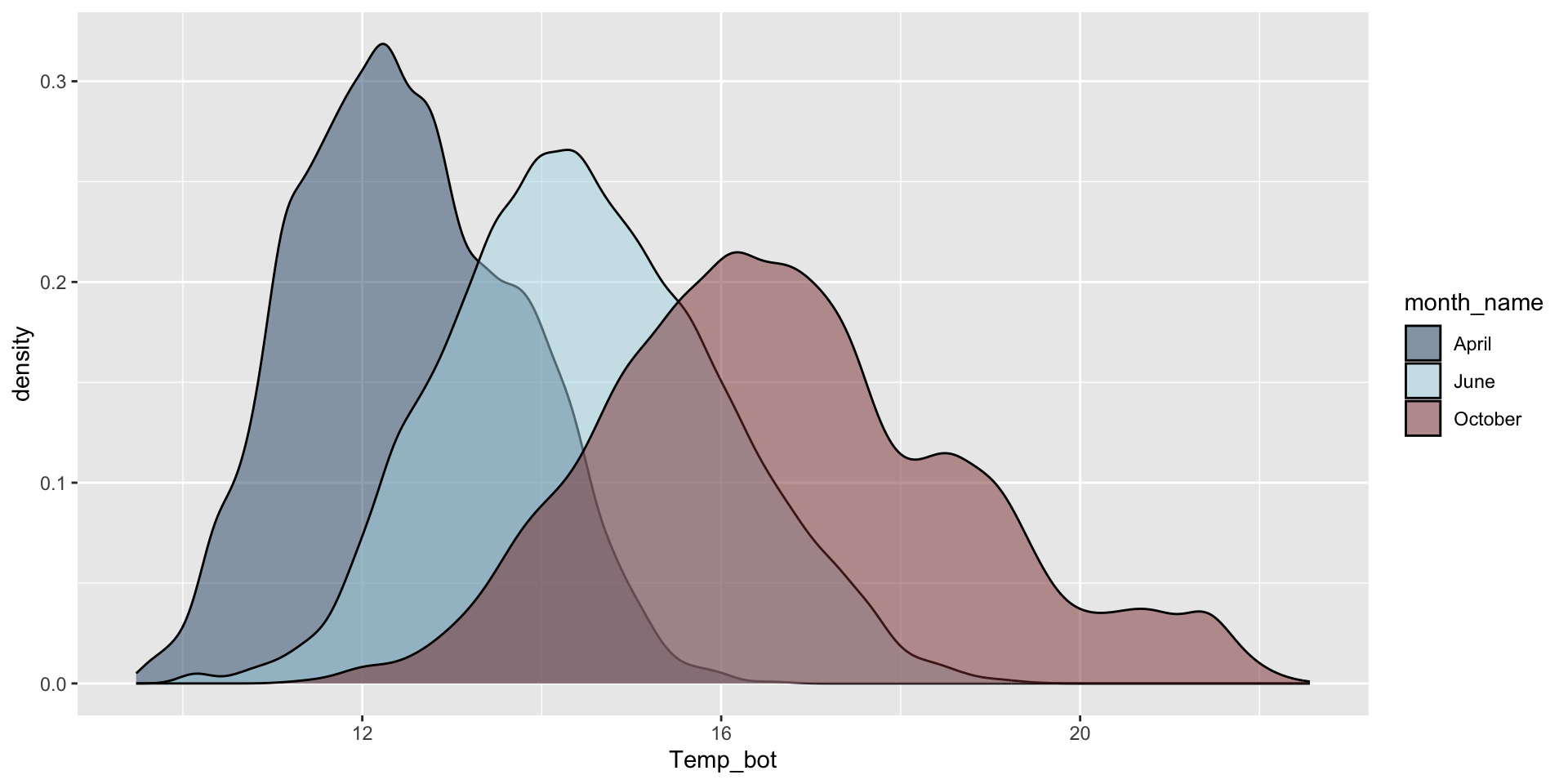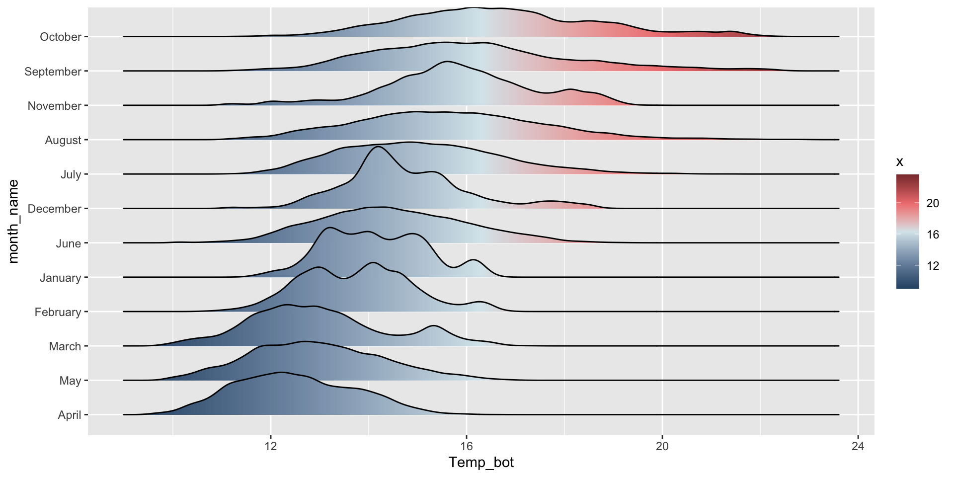 fill = after_stat(x) tells ggplot to compute the x values (representing Temp_bot) after the statistical transformation (density estimation) and map those computed x values to the fill aesthetic. As a result, the gradient fill of each density curve will reflect the temperature values along the x-axis.