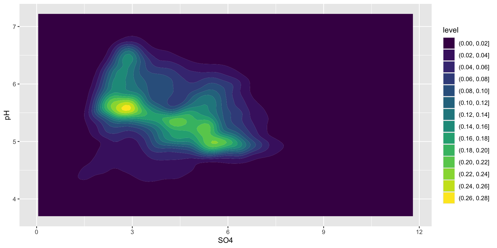 These are the 2d equivalents to creating a density plot using geom_density() (see week 3 materials).