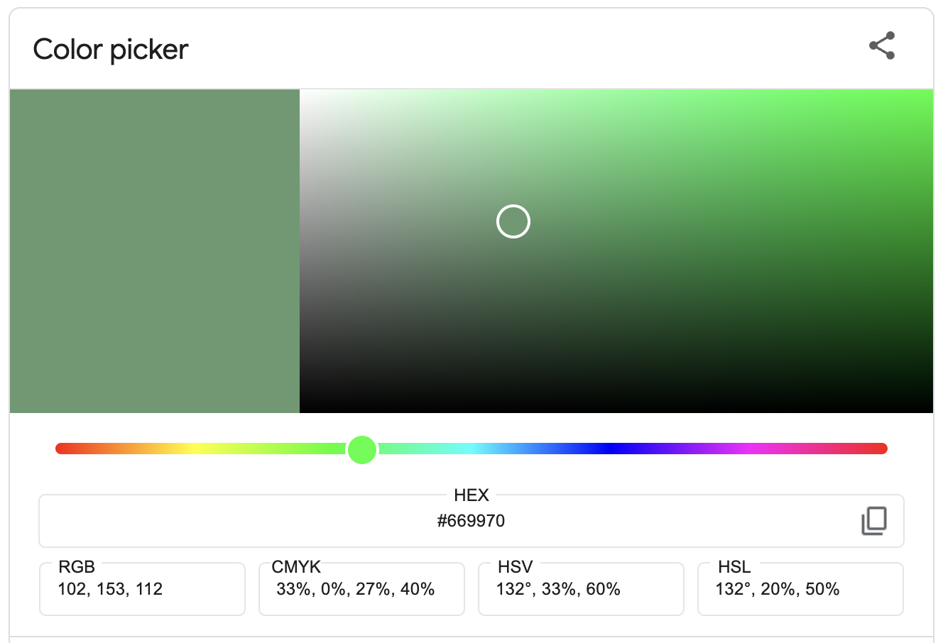 Green (132° on the color wheel) with default opacity (100%)