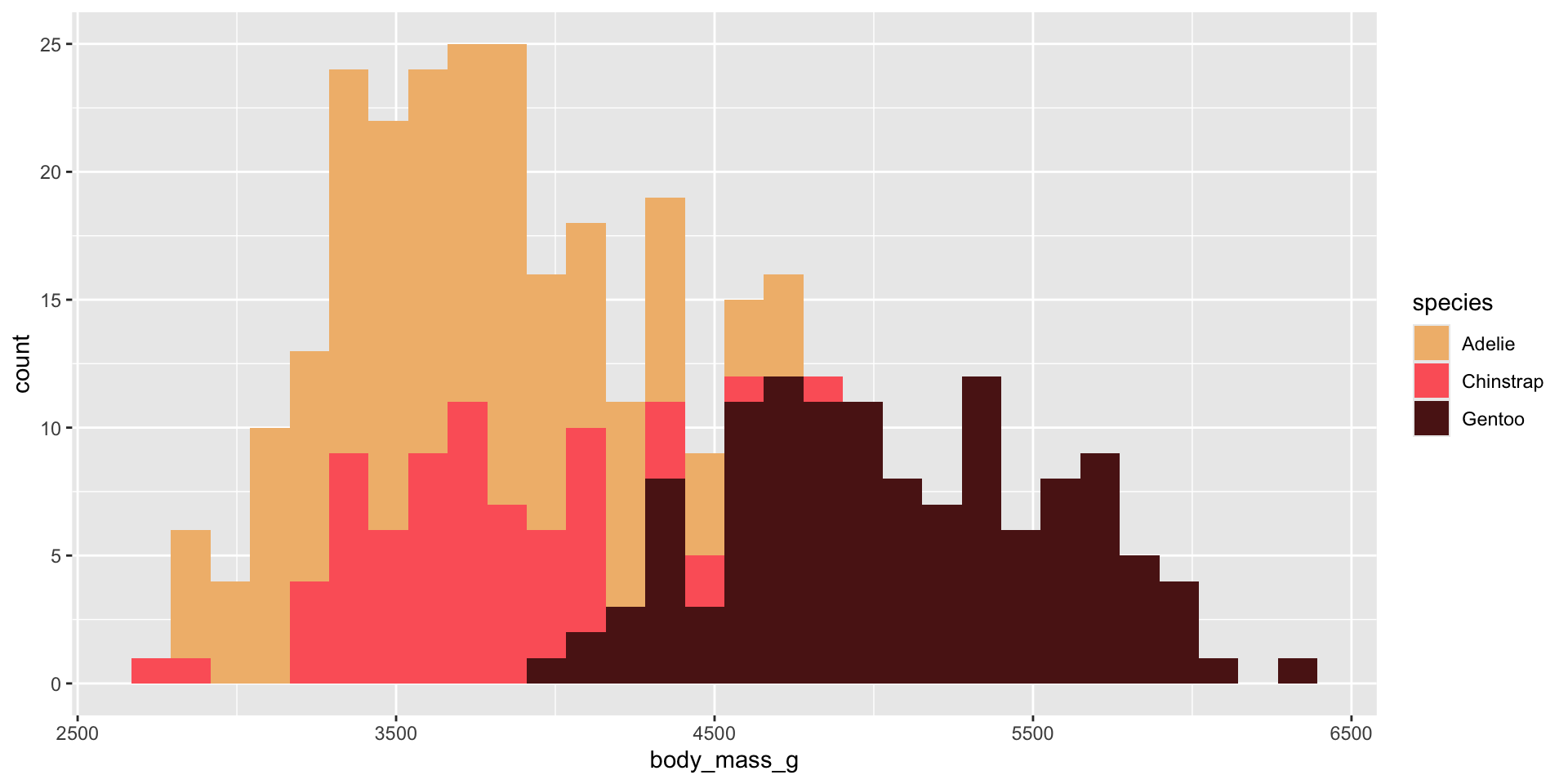 We should always be consistent with our colors. E.g. if Gentoo penguins are blue in one plot, they should be blue in all plots. Notice that our colors don’t “stick” with the species they represent, but rather they’re applied in the order that they appear in our palette: