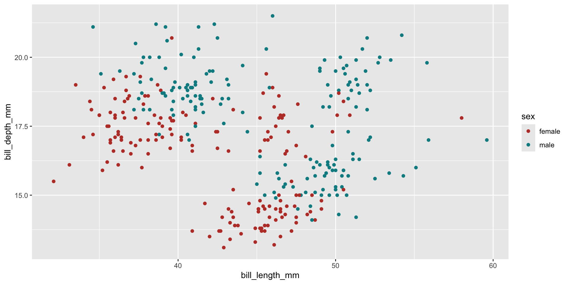 ggplot(aes(x = bill_length_mm, y = bill_depth_mm, color = my_color)) +