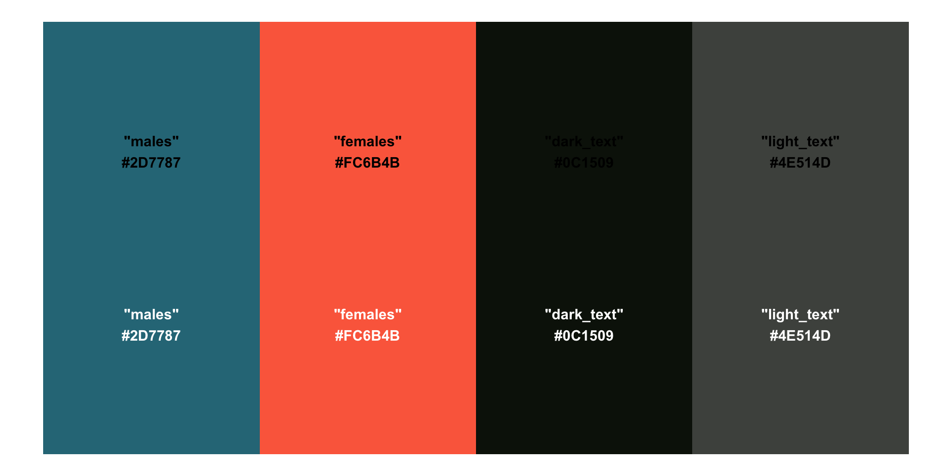 We already have the correct theme() elements added to our plot, but we do need to update our subtitle text with Markdown and HTML styling. Let’s bold and color the words “male” and “female”: